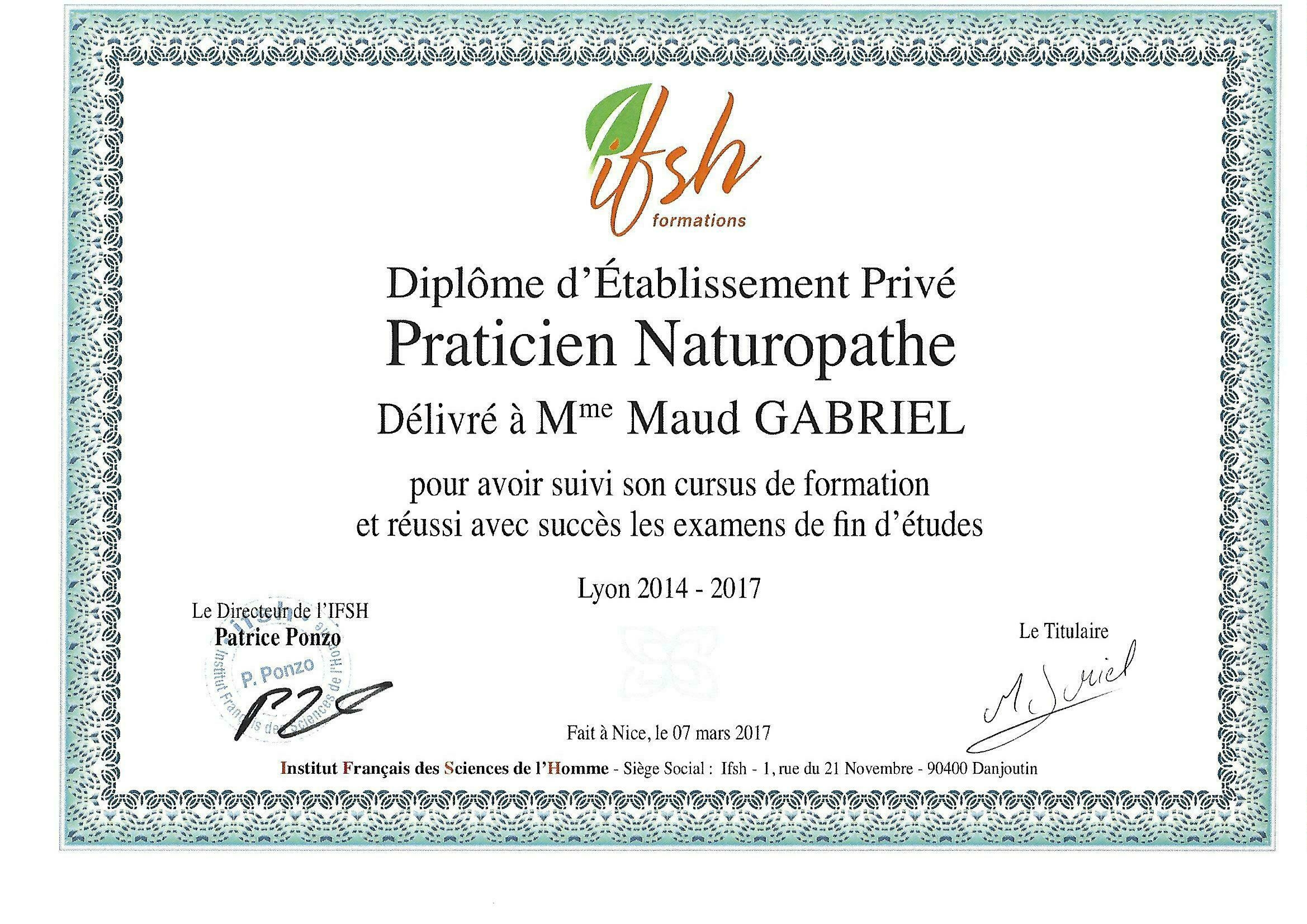 Cursus de Praticien Naturopathe suivi à l'IFSH 2014 / 2017