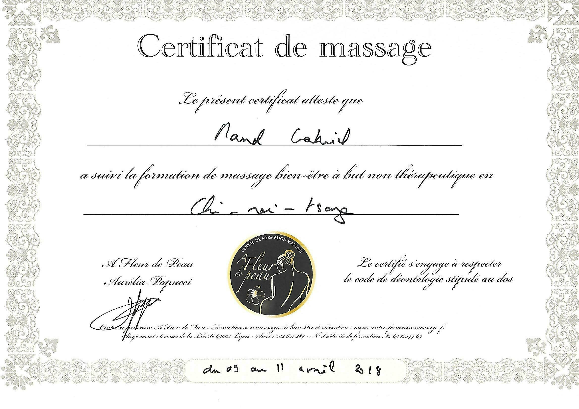 Certifiée en massage Chi Nei Tsang par l'école A Fleur de Peau 2018