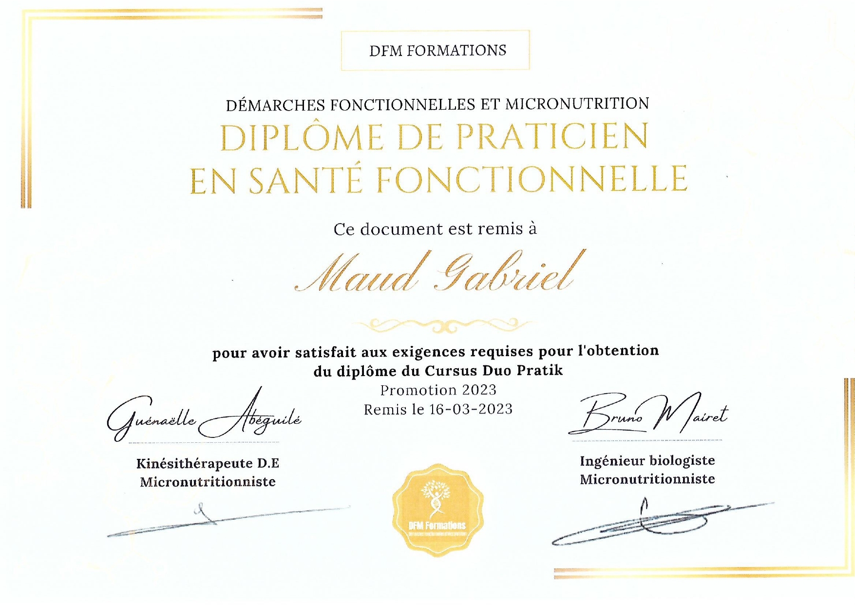 Certification en Démarche Fonctionnelle et Micronutritionnelle par l'organisme DFM Formations 2023