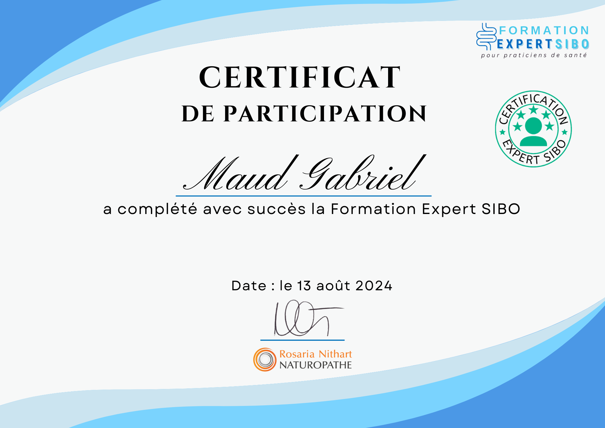 Certification EXEPERT SIBO dispensée par Rosaria NITHARD 2024