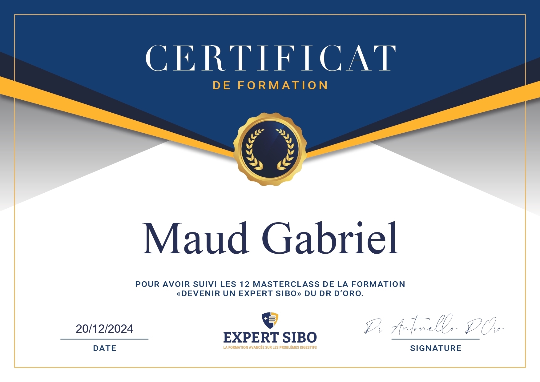 Certification EXPERT SIBO dispensée par le Dr Antonello d'ORO 2024