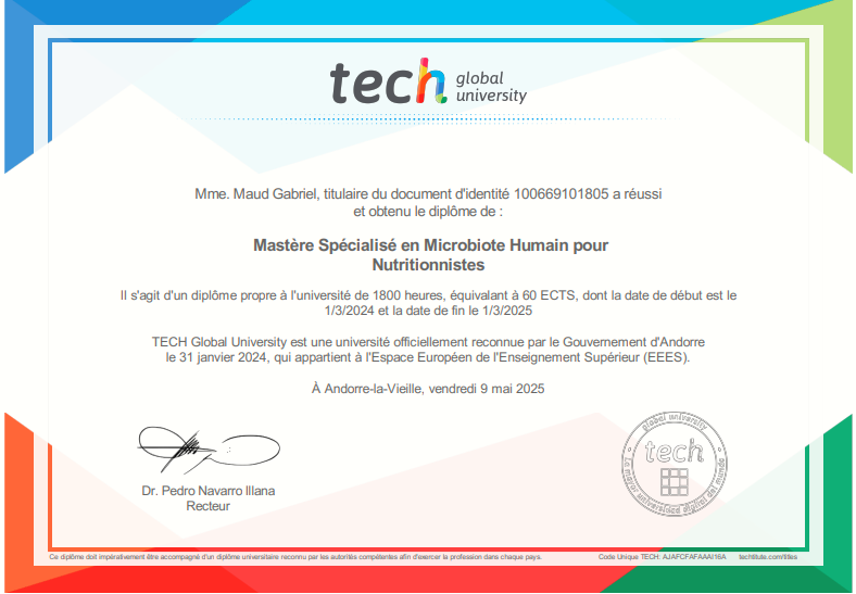 Diplômée d'un MASTER en MICROBIOTE HUMAIN - TECHNOLOGICAL UNIVERSITY